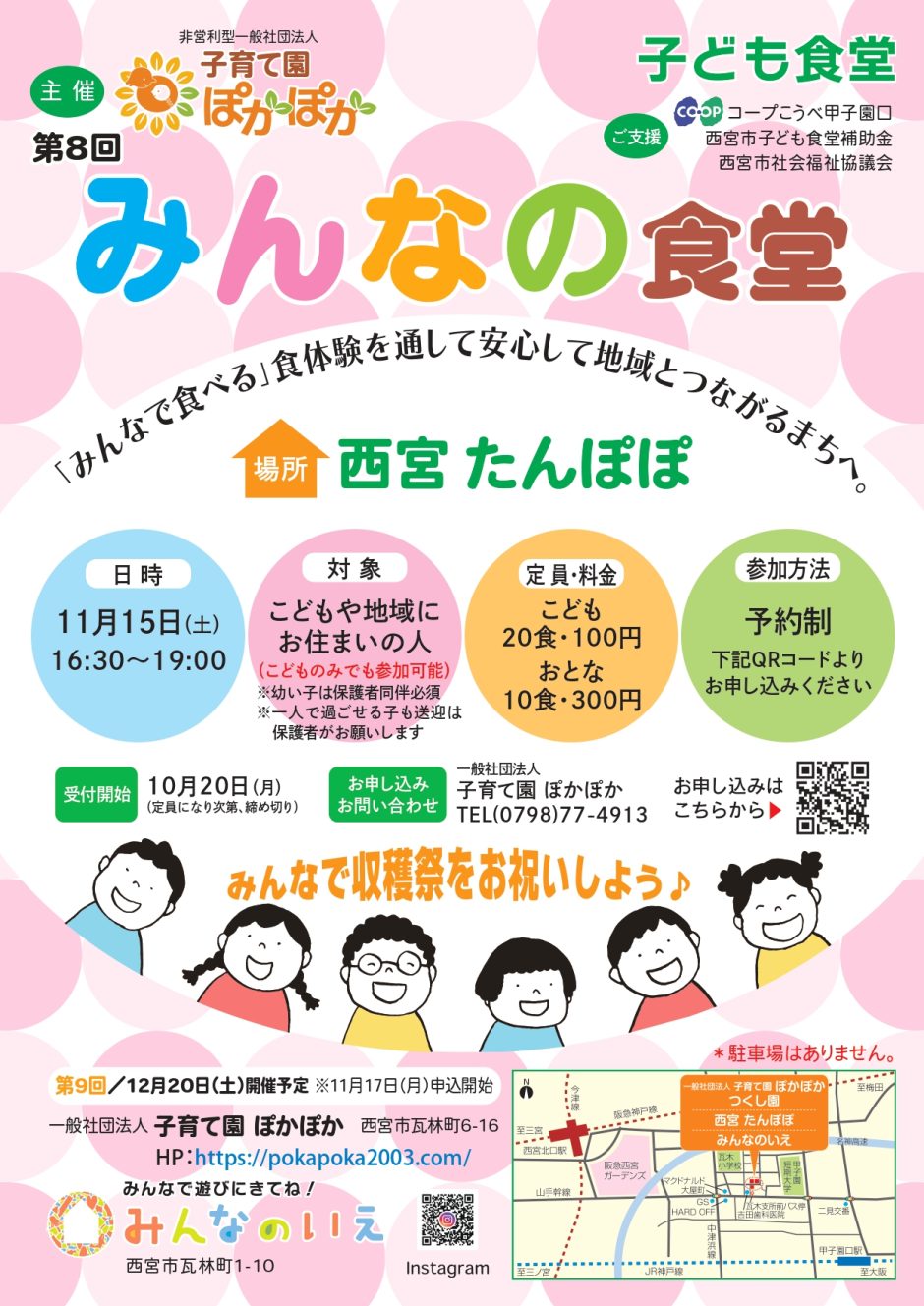 子ども食堂「みんなの食堂」♪11月15日(土)開催♪