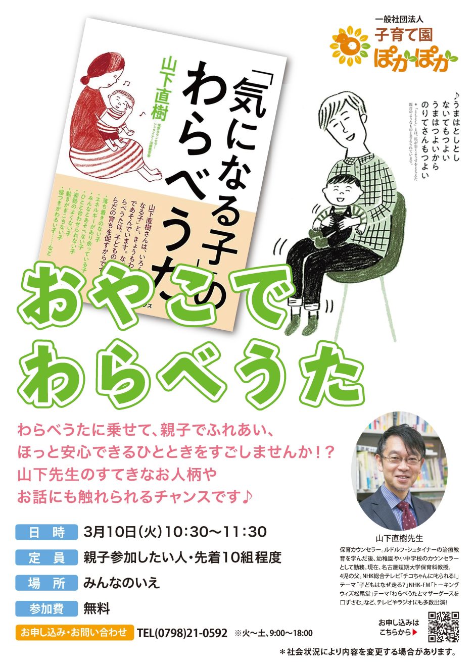 臨床心理士で発達支援・保育を専門とされている名古屋短期大学・保育科教授の山下直樹先生をお招きし、特別イベントを開催します!!
