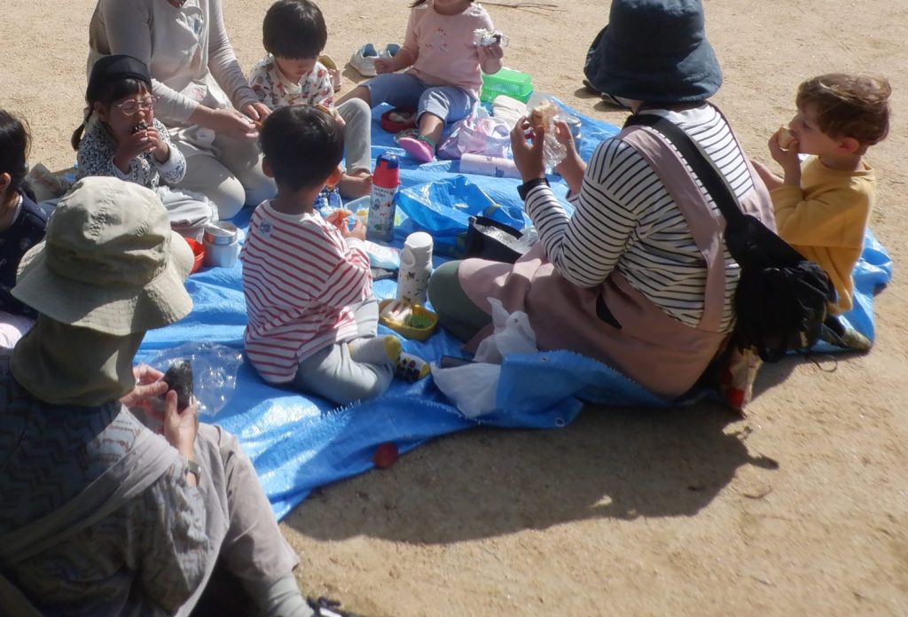 公園にレジャーシートを敷いてみんなで食べたおべんとう!美味しかったね!